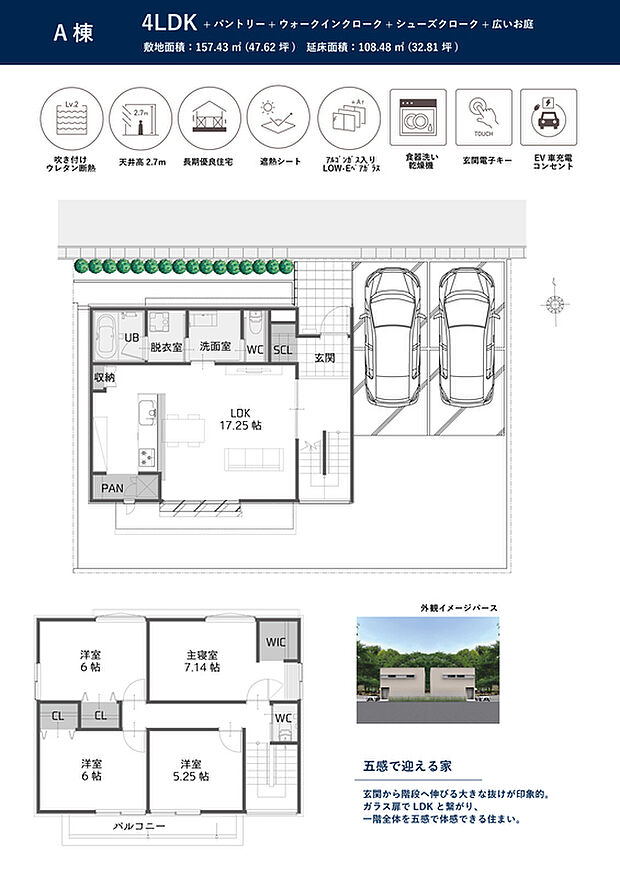 | 建物面積 | A棟:108.48m2・B棟:106.82m2 | ||