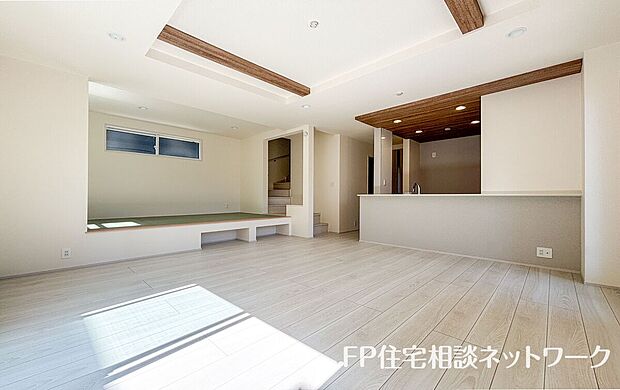 1階にある19.12帖の広々としたLDKには、多目的に使える4.0帖のスキップフロアを配置。 2階から行き来できる続きバルコニーや大容量のファミリークロークなど、家事動線をスムーズにする工夫が満載。 駐車2台可(車種による)、前道8mでお車の出し入れスムーズです。