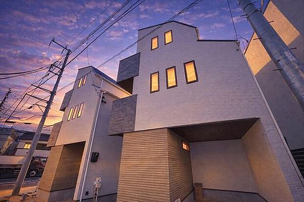 • 【現地外観写真】ナチュラルな色使いとスタイリッシュなフォルムで存在感を漂わせる街並み。都会的な外観と、雰囲気のある街並みがマッチし、新生活の情景を生み出します。