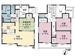| 間取り | 4LDK 間取り内訳:リビングダイニングキッチン 17帖(1階)・和室 4.5畳(1階)・洋室 7帖(2階)・洋室 5.5帖(2階)・洋室 5.2帖(2階) |