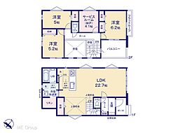 | 間取り | 4LDK 間取り内訳:リビングダイニングキッチン 16帖(1階)・洋室 5.2帖(1階)・洋室 7.2帖(2階)・洋室 5.2帖(2階)・洋室 5.2帖(2階) |