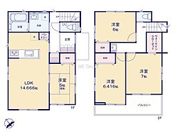 | 間取り | 4LDK 間取り内訳:リビングダイニングキッチン 16帖(1階)・和室 3畳(1階)・洋室 7.7帖(2階)・洋室 5.2帖(2階)・洋室 5.2帖(2階) |