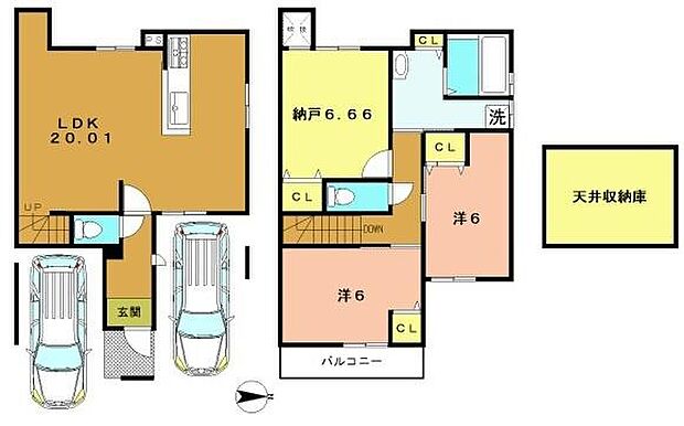 間口約7.16m 全居室6帖以上・収納あり 駐車2台可
