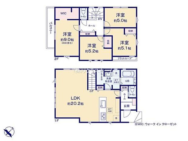 | 間取り | 4SLDK 間取り内訳:リビングダイニングキッチン 20.2帖・洋室 9帖・洋室 5.2帖・洋室 5.1帖・洋室 5帖 |