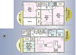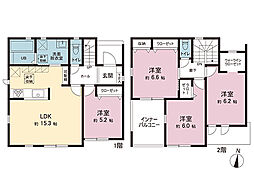| 間取り | 3SLDK 間取り内訳:リビングダイニングキッチン 15.3帖(1階)・和室 4畳(1階)・洋室 7.6帖(2階)・洋室 6.5帖(2階)・洋室 6.1帖(2階) |