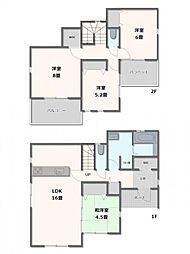 | 間取り | 4LDK 間取り内訳:リビングダイニングキッチン 16.5帖(1階)・和室 4.5畳(1階)・洋室 8.5帖(2階)・洋室 6帖(2階)・洋室 5帖(2階) |