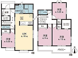 | 間取り | 4LDK 間取り内訳:リビングダイニングキッチン 18帖(1階)・洋室 5帖(1階)・洋室 7帖(2階)・洋室 6.5帖(2階)・洋室 5.2帖(2階) |