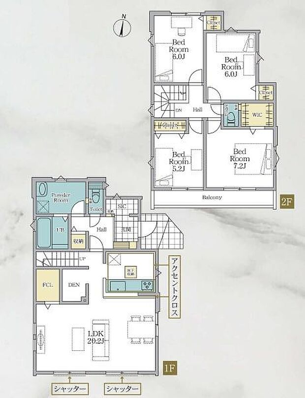 | 間取り | 4LDK 間取り内訳:リビングダイニングキッチン 20.2帖(1階)・洋室 5.2帖(2階)・洋室 7.2帖(2階)・洋室 6帖(2階)・洋室 6帖(2階) |