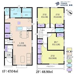 | 間取り | 4LDK 間取り内訳:リビングダイニングキッチン 19帖(1階)・洋室 7.6帖(2階)・洋室 6帖(2階)・洋室 5帖(2階)・洋室 5帖(2階) |