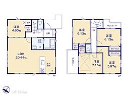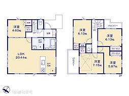 | 間取り | 5LDK 間取り内訳:リビングダイニングキッチン 20.4帖(1階)・洋室 4.6帖(1階)・洋室 7.1帖(2階)・洋室 6.1帖(2階)・洋室 6.1帖(2階)・洋室 5.8帖(2階) |