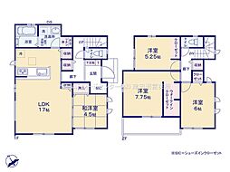 | 間取り | 4SLDK 間取り内訳:リビングダイニングキッチン 17.4帖(1階)・洋室 6.9帖(2階)・洋室 5.3帖(2階)・洋室 4.5帖(2階)・洋室 4.3帖(2階) |