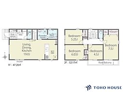 • 「建築条件付き土地」の「建物プラン例」は、土地購入者の設計プランの一例であり、プランの採用可否は任意です。