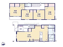 | 間取り | 4LDK 間取り内訳:リビングダイニングキッチン 18.5帖(1階)・洋室 5.2帖(2階)・洋室 5.2帖(2階)・洋室 6帖(2階)・洋室 7.2帖(2階) |
