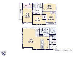 | 間取り | 4LDK 間取り内訳:洋室 4.7帖(1階)・リビングダイニングキッチン 17.2帖(2階)・洋室 5帖(3階)・洋室 5.2帖(3階)・洋室 6帖(3階) |