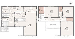 | 間取り | 2LDK 間取り内訳:リビングダイニングキッチン 13帖(2階)・洋室 7帖(3階)・洋室 5.2帖(3階) |