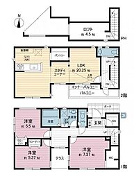 | 間取り | 4LDK 間取り内訳:リビングダイニングキッチン 18.2帖(1階)・洋室 4.5帖(1階)・洋室 10.5帖(2階)・洋室 5.7帖(2階)・洋室 5.4帖(2階) |