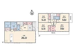 | 間取り | 3LDK 間取り内訳:リビングダイニングキッチン 17.2帖(1階)・洋室 11.2帖(2階)・洋室 5.3帖(2階)・洋室 5.2帖(2階) |