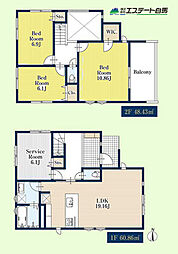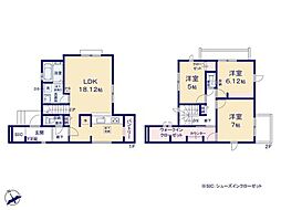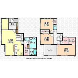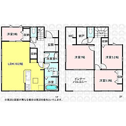 | 間取り | 4SLDK 間取り内訳:リビングダイニングキッチン 16.3帖(1階)・洋室 3.8帖(1階)・洋室 7帖(2階)・洋室 5.3帖(2階)・洋室 5.3帖(2階)・収納(2階) |