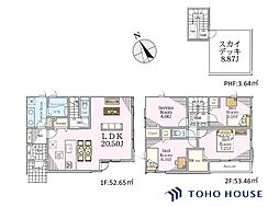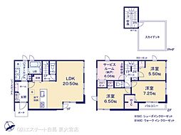 間取り内訳:リビングダイニングキッチン 20.5帖(1階)・洋室 7.2帖(2階)・洋室 6.5帖(2階)・洋室 5.5帖(2階)・収納 6帖(2階)・その他 8.8帖