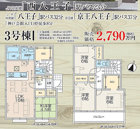 • 交通:JR中央線「八王子」駅まで バス乗車 バス停「善太郎坂下交差点駅」まで 徒歩 1分