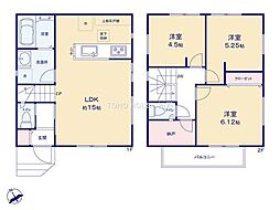間取り内訳:リビングダイニングキッチン 16.5帖(1階)・洋室 6帖(2階)x2・洋室 5.2帖(2階)・洋室 4.5帖(2階)