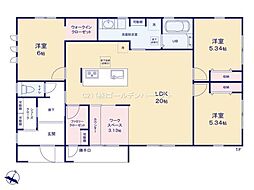 間取り内訳:リビングダイニングキッチン 20帖(1階)・洋室 6帖(1階)・洋室 5.3帖(1階)x2