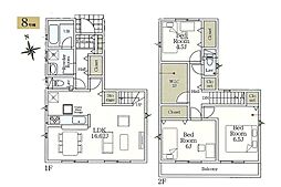 | 間取り | 3LDK 間取り内訳:リビングダイニングキッチン 17帖(1階)・洋室 6帖(2階)・洋室 6帖(2階)・洋室 4.4帖(2階) |