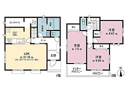 間取り内訳:リビングダイニングキッチン(1階)・洋室 7.5帖(2階)・洋室 6.6帖(2階)・洋室 6帖(2階)