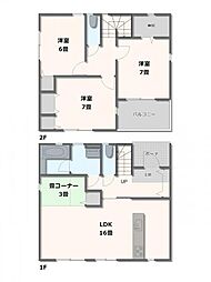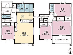 間取り内訳:リビングダイニングキッチン 15帖(1階)・洋室 5.2帖(1階)・洋室 7帖(2階)・洋室 5.7帖(2階)x2