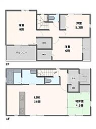 | 間取り | 4LDK 間取り内訳:リビングダイニングキッチン 16.5帖(1階)・和室 4.5畳(1階)・洋室 8帖(2階)・洋室 6.8帖(2階)・洋室 5.3帖(2階) |