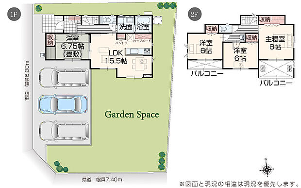 • 「建築条件付き土地」の「建物プラン例」は、土地購入者の設計プランの一例であり、プランの採用可否は任意です。