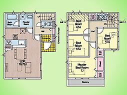 • 「土地(建築条件なし)」の「建物プラン例」に関して、そのプラン例は特定の建築請負会社によるもので、当該建築請負会社以外で建てた場合、同様のものが同価格で建てられるとは限りません。また、建築請負会社を特定するものではありません。