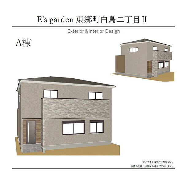 • 【【A棟 外観パース】】周辺の街並みと調和する、お洒落な外観デザイン。アースカラーの優しい色合いが魅力。全棟長期優良住宅認定物件です。