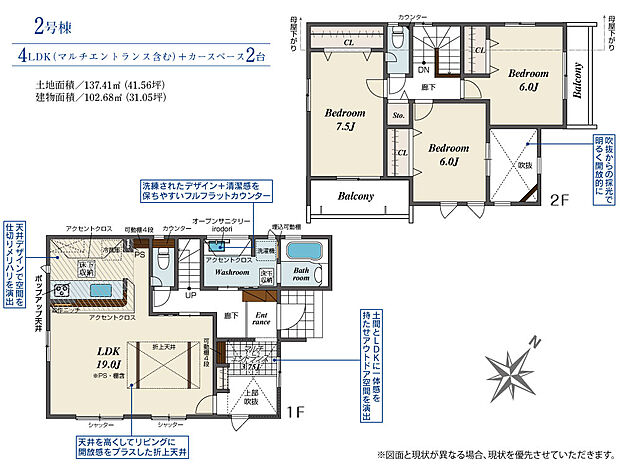 間取り 3LDK~4LDK 建物階 木造2階建(在来工法)