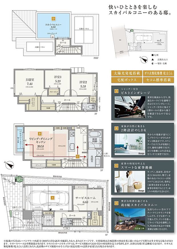 • 【太陽光発電システム標準採用】太陽光発電対象住戸は一部住戸となります。太陽光発電利用については一部諸条件がございます。詳しくはスタッフへお問い合わせください。※Image Photo