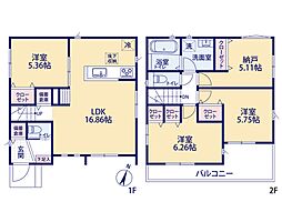 • 【3LDK】家族のコミュニケーションを重視した対面式キッチン♪2階に3部屋をまとめることで、ご家族それぞれのプライベート空間も保てます☆1F、2Fホール収納もしっかりあるのでお掃除道具などもスッキリ片付きます!