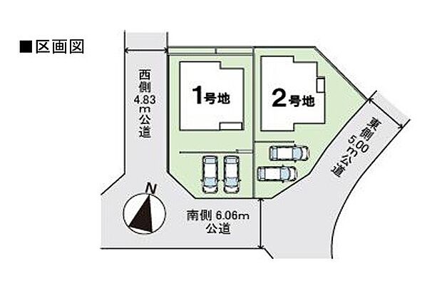 1号地:西4.8m 南6m /2号地:東5m 南6m
