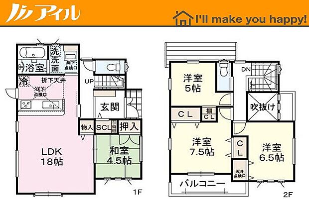 • 「建築条件付き土地」の「建物プラン例」は、土地購入者の設計プランの一例であり、プランの採用可否は任意です。