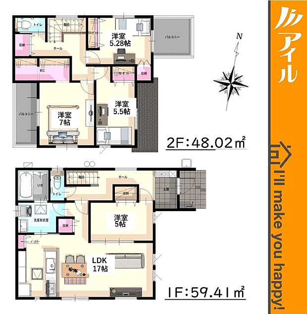 • 2階には洋室を3部屋ご用意いたします(1号棟同仕様)