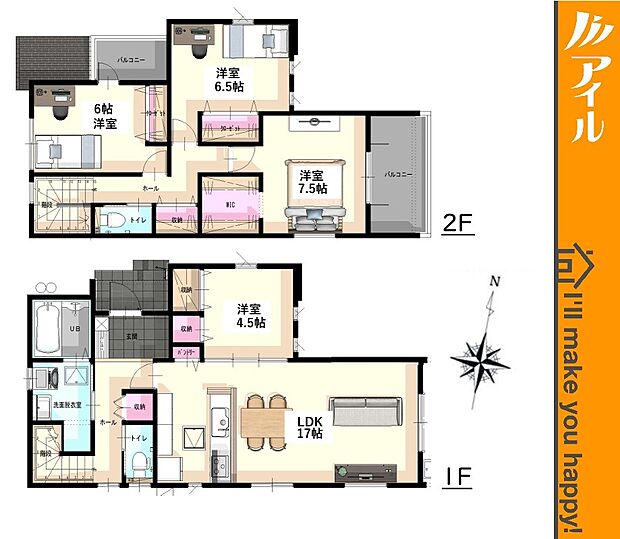 • 「建築条件付き土地」の「建物プラン例」は、土地購入者の設計プランの一例であり、プランの採用可否は任意です。