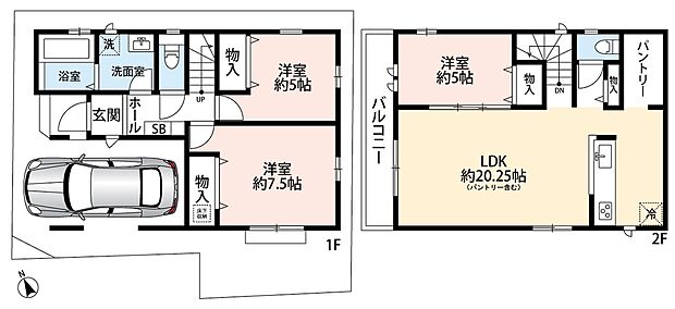 | 間取り | 2LDK+S(納戸)~3LDK | 建物階 | 木造2階建(軸組工法) |