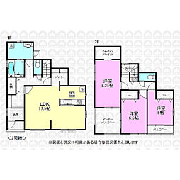 | 間取り | 3LDK 間取り内訳:リビングダイニングキッチン 17.5帖(1階)・洋室 8.2帖(2階)・洋室 6.5帖(2階)・洋室 5帖(2階) |