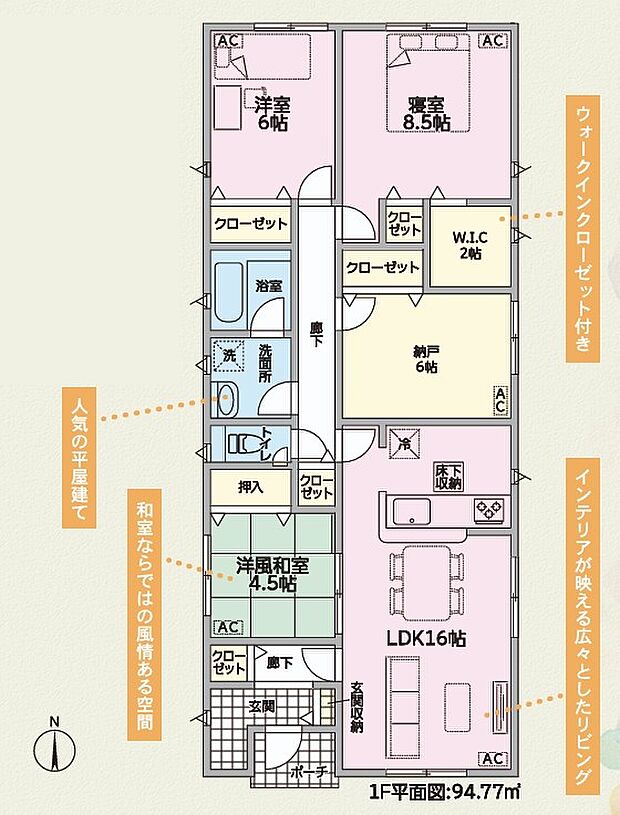 ◆日当たり良好◎南向きリビング16帖♪リビングに和室併設、客間やキッズルームに便利です◎たっぷり収納できるウォークインクローゼット付き♪玄関横にシューズボックス付き◎玄関もスッキリ♪駐車場2台可能♪
