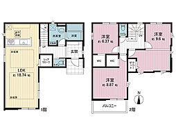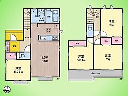 間取り内訳:リビングダイニングキッチン 16.2帖(1階)・洋室 5.2帖(1階)・洋室 7帖(2階)・洋室 6.1帖(2階)・洋室 5.2帖(2階)