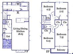 | 間取り | 5LDK 間取り内訳:リビングダイニングキッチン 15.7帖(1階)・洋室 5.2帖(1階)・洋室 6.5帖(2階)・洋室 5.4帖(2階)・洋室 5.4帖(2階)x2 |