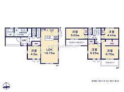 | 間取り | 5LDK 間取り内訳:リビングダイニングキッチン 15.7帖(1階)・洋室 4.5帖(1階)・洋室 6.7帖(2階)・洋室 5.2帖(2階)・洋室 5.6帖(2階)・洋室 4.4帖(2階) |