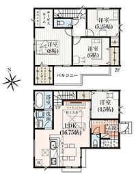 | 間取り | 3LDK 間取り内訳:リビングダイニングキッチン 18帖(1階)・洋室 7.5帖(2階)・洋室 5.2帖(2階)・洋室 5.7帖(2階) |