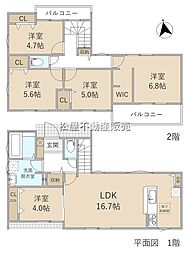 間取り内訳:リビングダイニングキッチン 17帖(1階)・和室 4.3畳(1階)・洋室 7.1帖(2階)・洋室 5.2帖(2階)x2
