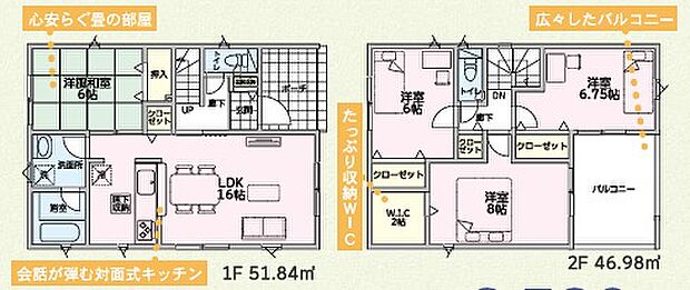 | 間取り | 4LDK 間取り内訳:リビングダイニングキッチン 16帖(1階)・和室 6畳(1階)・洋室 8帖(2階)・洋室 6.7帖(2階)・洋室 6帖(2階) |
