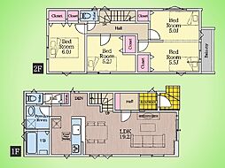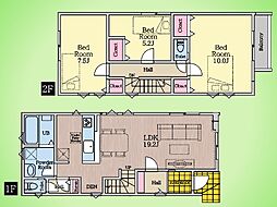 間取り内訳:リビングダイニングキッチン 20帖(1階)・洋室 9.7帖(2階)・洋室 5.7帖(2階)・洋室 5.6帖(2階)・洋室 4.8帖(2階)